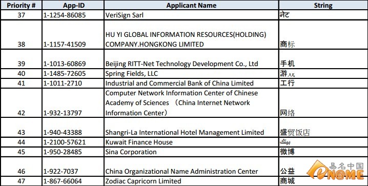 據(jù)了解,ICANN總共收到1930個新頂級域名申請名單,申請獲批的新頂級域名可能多達500個以上。根據(jù)抽簽的結(jié)果顯示,天主教排在第1位,CNNIC申請的“.公司”和“.網(wǎng)絡(luò)”兩個中文域名分別排在103、42位。.八卦排在第21位,.集團排在第23位,.手機第39位,.商城第47位,.我愛你第50位,.娛樂第57位,.餐廳第78位,.時尚第92位等。